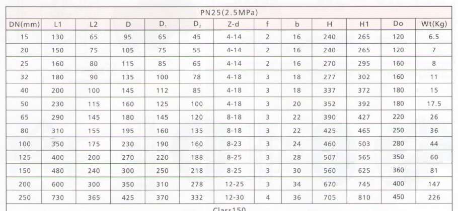 公称压力:PN1.0~4.0Mpa,Class150~300Lb